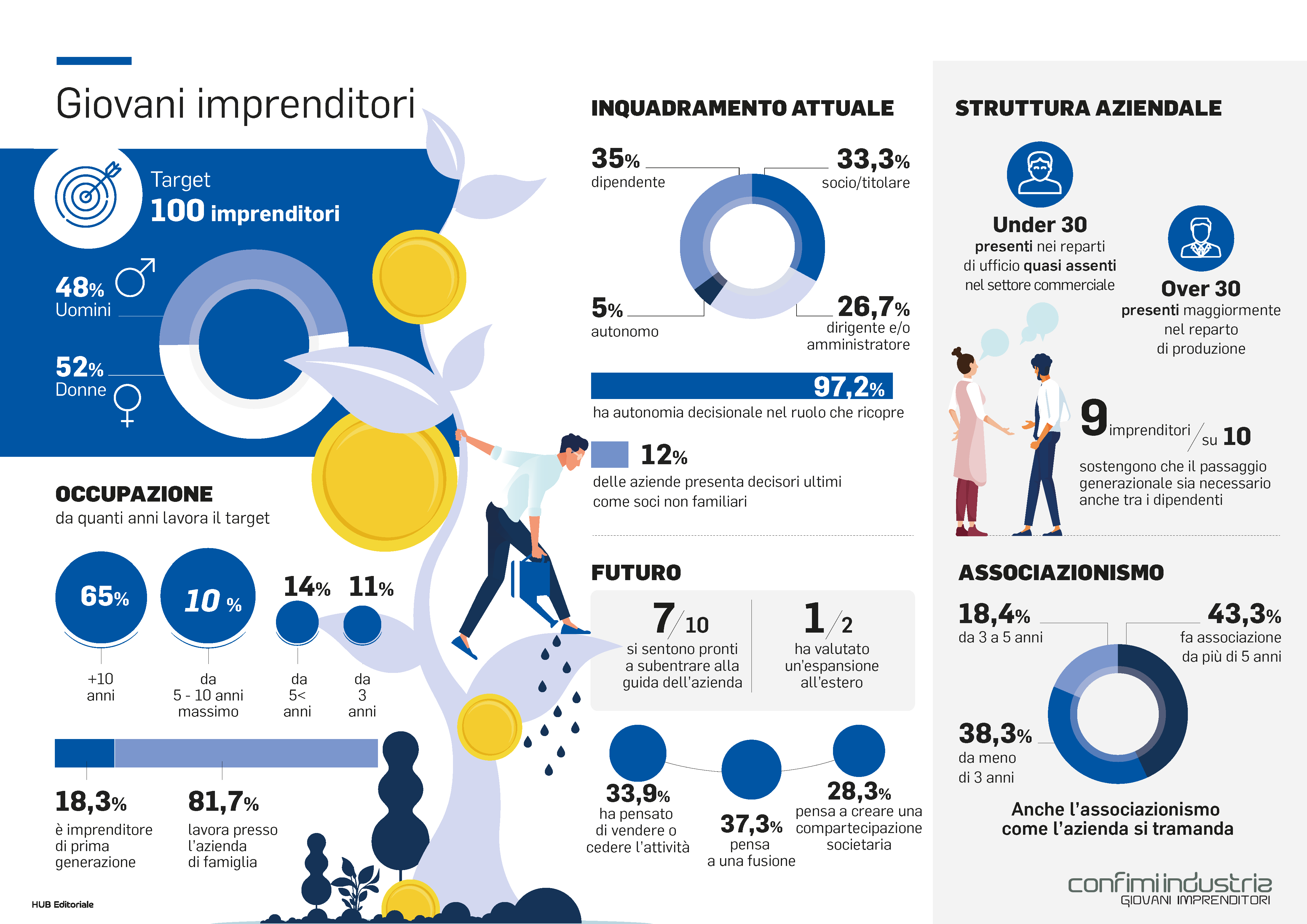 Li chiamano giovani imprenditori perché non hanno ancora compiuto 40 anni eppure quasi il 70% di loro lavora da 10 anni o più. 1 su 5 inoltre è un imprenditore di prima generazione e ha scelto di esserlo per passione.